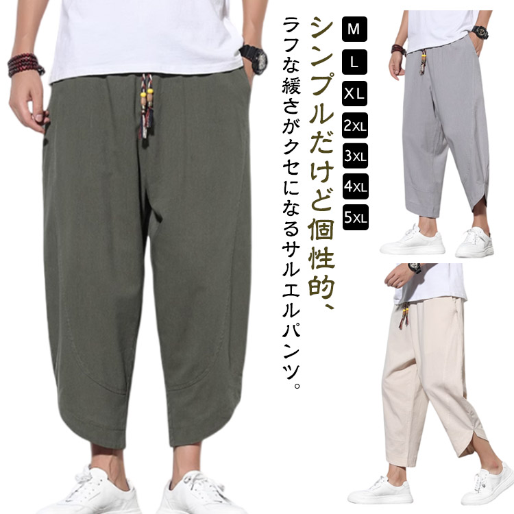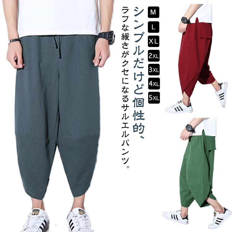 サルエルパンツ メンズ リネンパンツ 夏 麻パンツ 綿麻パンツ ロングパンツ カジュアルパンツ ロングパンツ ワイドパンツ