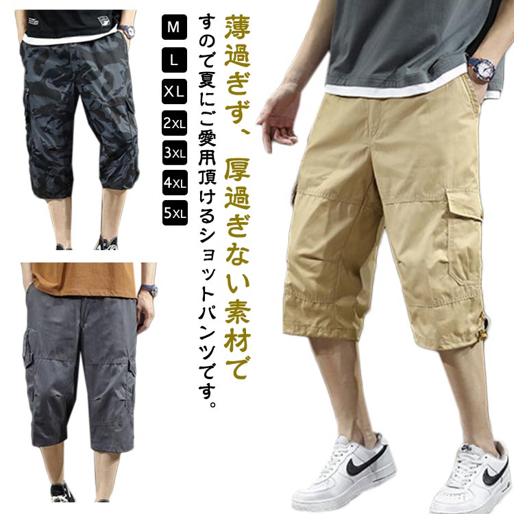 パンツ メンズ ハーフパンツ 夏用 七分丈 クロップドパンツ カーゴパンツ アウトドア ひざ下メンズファッション ズボン パンツ
