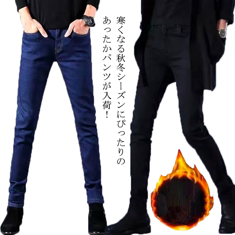 暖チノ スキニー メンズ デニム パンツ 裏起毛パンツ 裏起毛パンツ 暖パン あったか ボンディング 無地