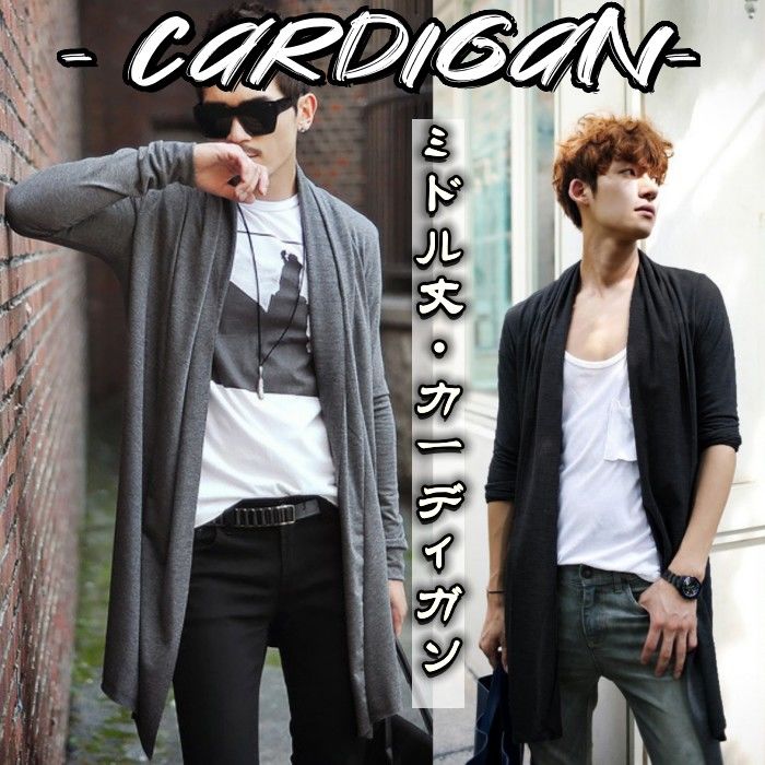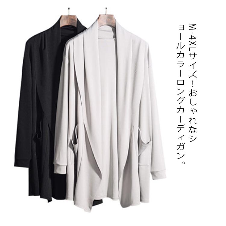 ライトアウター カーディガン ロングカーディガン ドレープ 秋 長袖 大きいサイズ ビジネス カットソー ゆったり トップス ビッグシルエット 無地 ジャケット メンズ ショールカーディガン 韓国 男