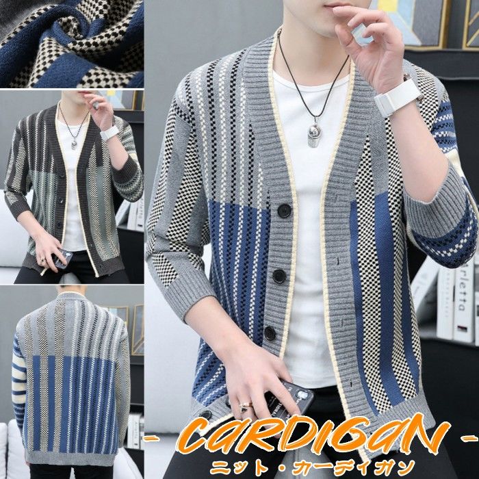 ニット カーディガン 長袖 ジャケット ショートコート アウター トップス 春秋服 3色 ブラックメンズファッション トップス カーディガン