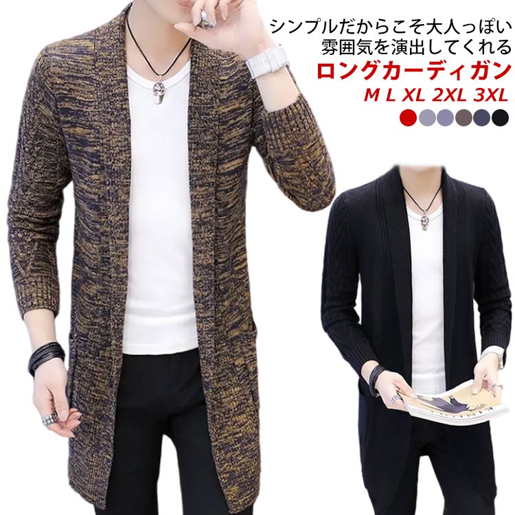 メンズカーディガン ロング カーディガン 長袖 ワンカラー カジュアル キレイめメンズファッション トップス カーディガン