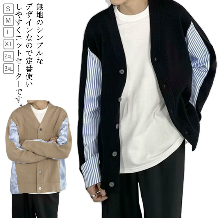 薄手 vネック ニットカーディガン カーデ 無地 長袖 おしゃれ リブ編み ニットジャケットメンズファッション トップス カーディガン