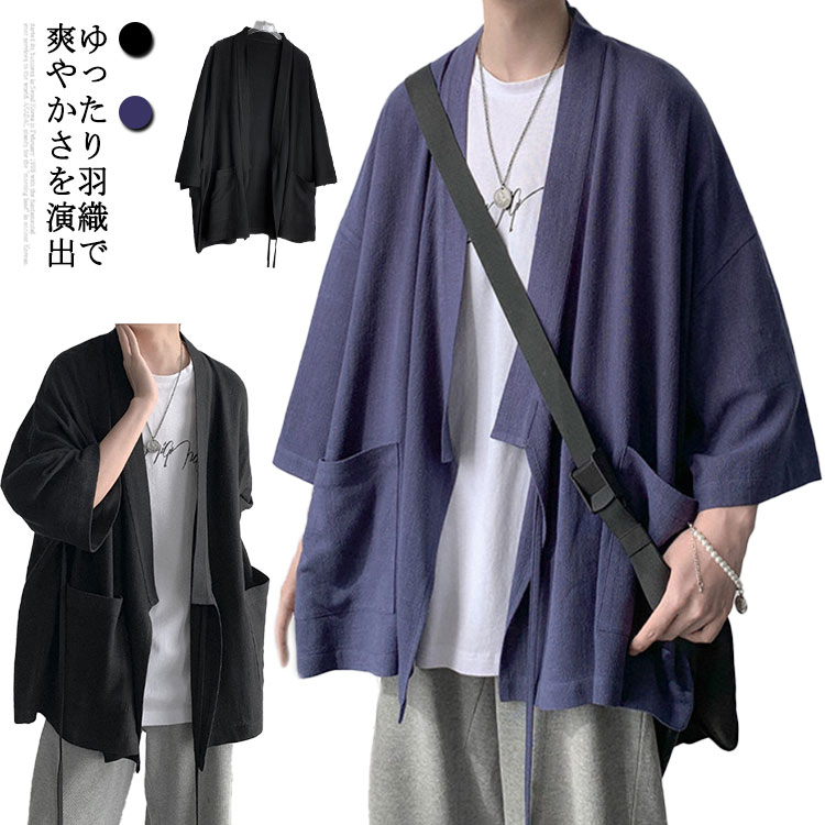 カーディガン 春夏 ビッグシルエット ゆったり 夏服 おしゃれ メンズ 薄手 7分袖カーディガン カジュアル 涼しい 和風 羽織り ドロップショルダー シンプル トップス 和式 無地 シャツ サマーカ