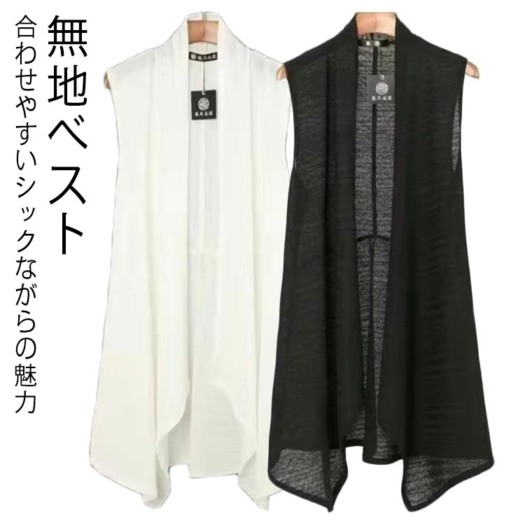 ノースリーブ ショール風 ライトアウター 重ね着 レイヤード ベスト チョッキ ジレ カジュアル 大きいサイズ