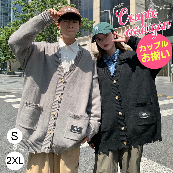 ニットカーディガン 黒 ユニセックス 女性 男性 カップルお揃い服 ペアルックニットセーター 長袖 秋服 冬 オシャレ カッコイイ 暖かい