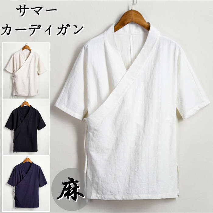 サマーカーディガン 綿麻 和風 和服 ゆったり 無地 トップス アウター 春夏服 4色 黒色 紺色 白色