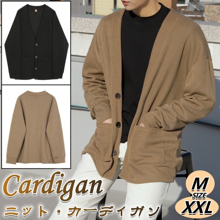 ニットカーディガン ネック 前開き 配色 カジュアル 春秋 メンズファッションメンズファッション トップス カーディガン