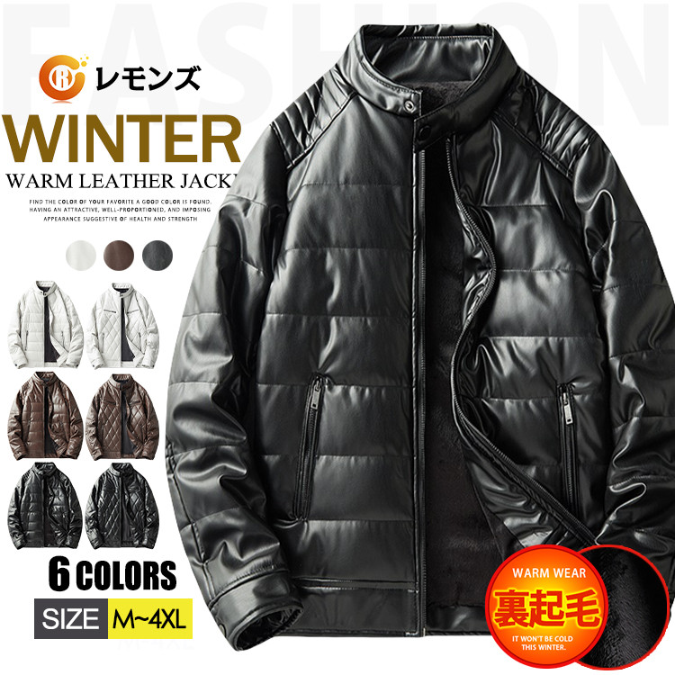 レザージャケット 裏起毛 厚地 シングル おしゃれ ボアジャケット 中綿ジャケットメンズファッション コート ジャケット