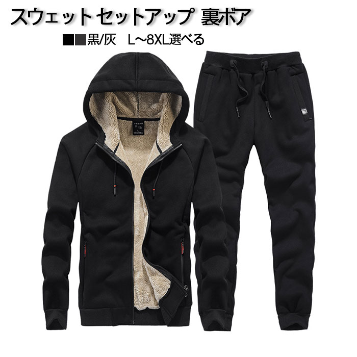 L~8XL選べる スウェット セットアップ 上下 メンズ ボア 裏ボア パーカー パンツ 冬ジップパーカー フード スウェットパンツ 無地 暖 ルームウェア もこもこ 暖かい あったか メンズファッシ