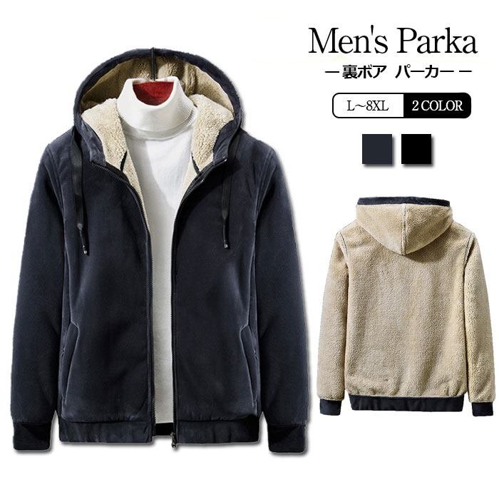 L~8XL選べる パーカー メンズ ボア ボアパーカー スウェット 裏起毛 ジップパーカー 裏ボア 裏起毛あったか 暖かい パーカー フード付き 無地 無地 カジュアル
