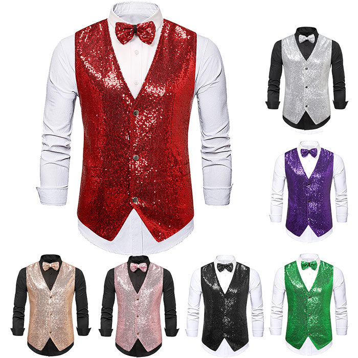 ベスト スパンコール メンズ 男性用 細身 スリム ダンス衣装 ステージ 舞台衣裳 無地 イベント パーティー 発表会 舞台 社交ダンス 衣装 ハロウィン 仮装 衣装 新年会 忘年会 余興 衣装 レッ