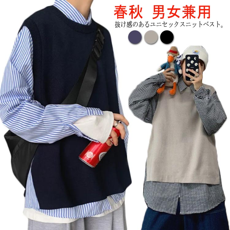 ニットベスト 無地 丸首 インナー 脇開き ベスト ニット 着やせメンズファッション トップス ベスト ジレ