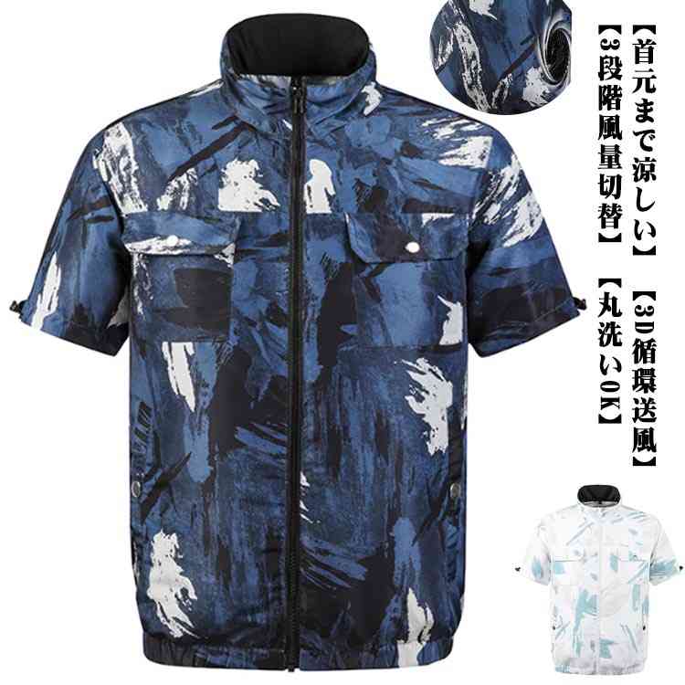 服 半袖 迷彩柄 作業服 ファン付きベスト 夏用 ファン付き作業着 ファンセット クールウェア 熱中症対策 3段階風量調節