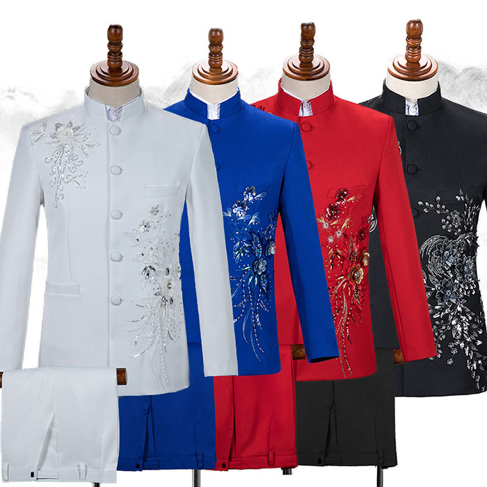 ステージ衣装 メンズ ステージ スーツ ジャケット パンツ セットアップ スパンコール 花 パーティ 司会 カラオケ イベント コスプレ 衣装 ダンス衣装 発表会 新年会 忘年会 余興 衣装 舞台衣装