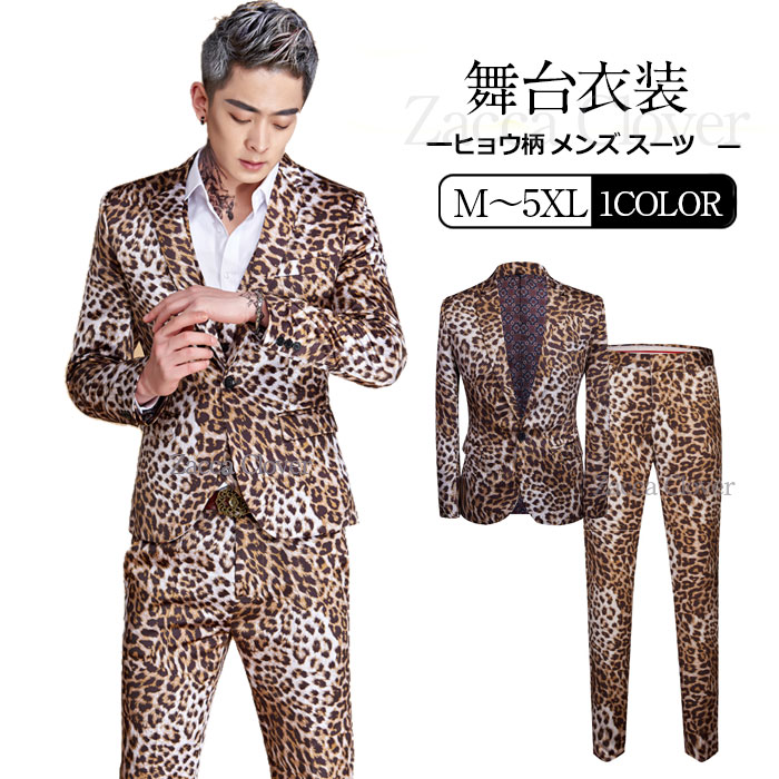 ステージ衣装 メンズ スーツ ヒョウ柄 ひょう柄 豹柄 忘年会 新年会 ダンス衣装 カラオケ衣装 舞台衣装 テレビ出演 記念撮影 ハロウィン 衣装 コスプレ コスチューム 仮装 芸能人 芸人 ジャケッ
