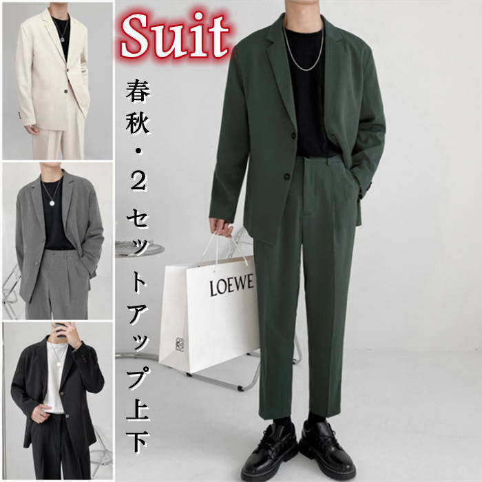 2点セットアップ上下 テーラードジャケット スラックス 夏品 男性用 無地 涼しい 4colors 灰色 黒色 緑色