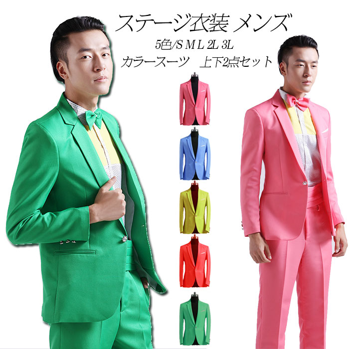 ステージ衣装 メンズ スーツ カラースーツ 上下2点セット 忘年会 新年会 ステージ衣装 ダンス衣装 カラオケ衣装 舞台衣装 ハロウィン コスプレ 赤 青 緑 黄 ピンク