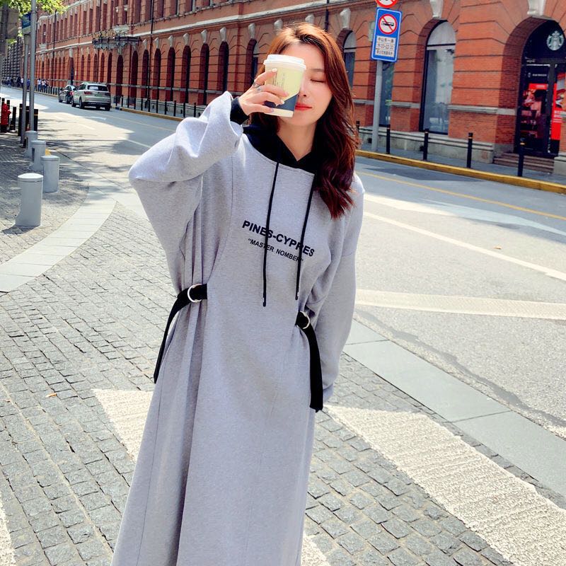 レディース ロングワンピース トレーナー ワンピース 春秋 無地 ゆったり フード付き 大きいサイズ 可愛い おしゃれ ゆったり 091
