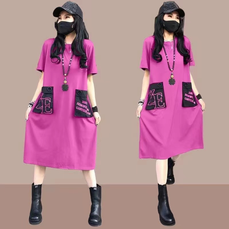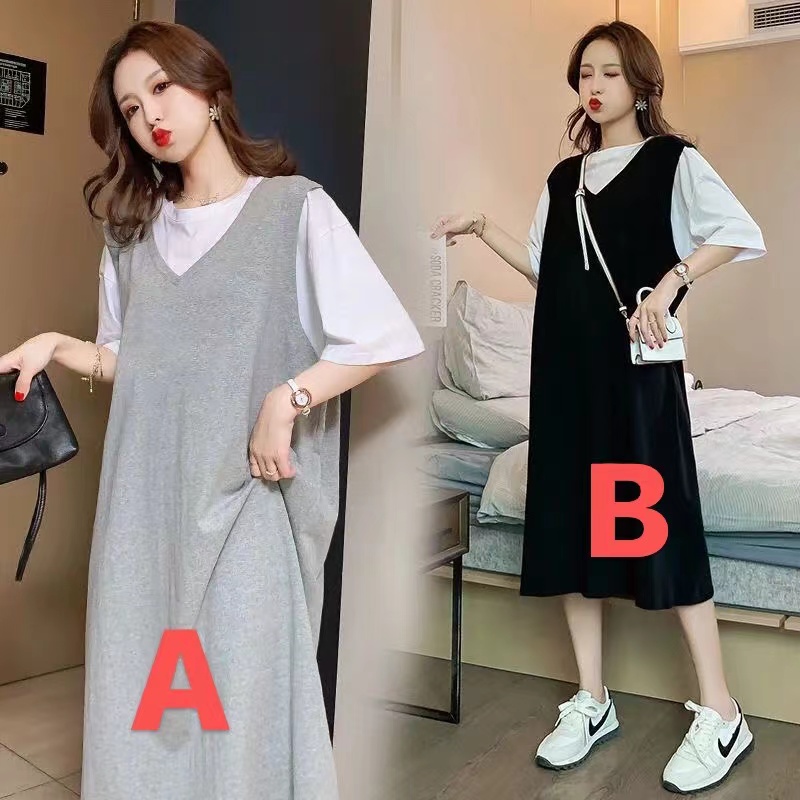 ロングワンピース 夏 半袖 レディース 大きいサイズ 重ね着風tシャツワンピースレディースファッション ワンピース