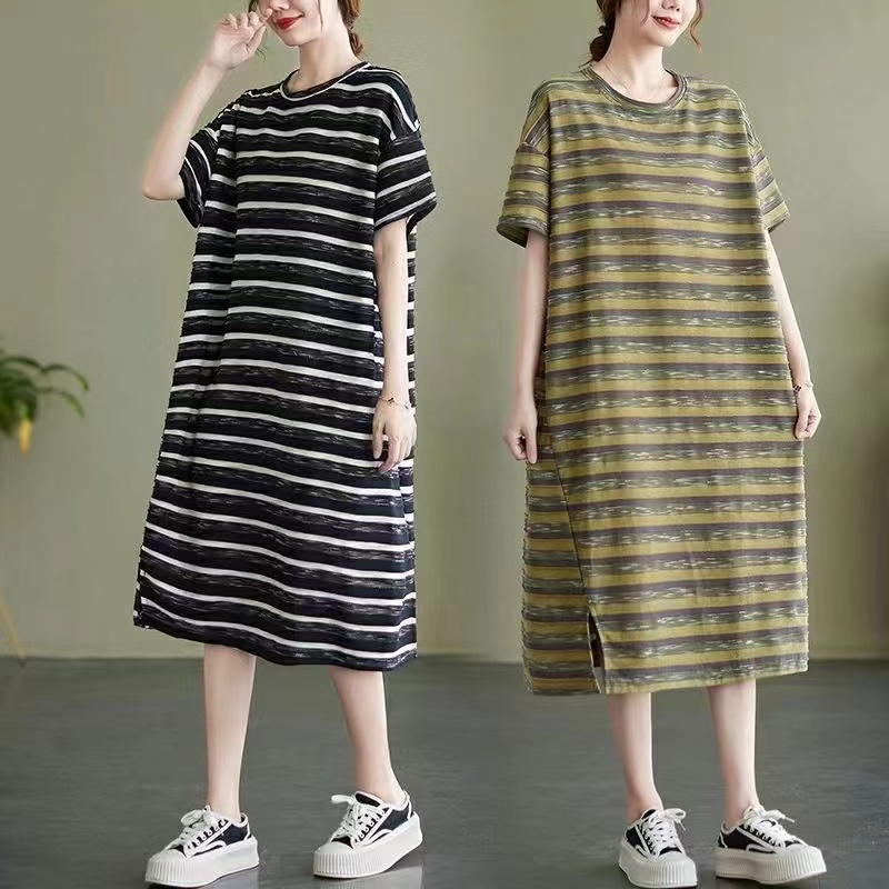 ワンピース レディース 半袖 大きいサイズ ストライプ ショール スプライシングレディースファッション ワンピース