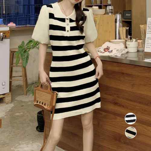 レディース 襟付き サマーニットワンピ 袖切り替え ポロワンピース おしゃれ カジュアル 半袖春夏ワンピース 体型カバー 着やせワンピース ショート丈ワンピ 10代20代30代