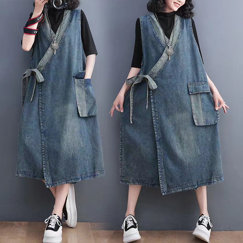 ロングワンピース レディース 春秋 ベストワンピース デニム 可愛い ゆったり 通勤 カジュアル 2 003