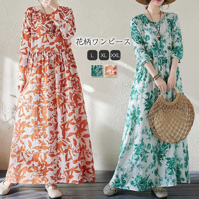 ワンピース レディース 長袖 ロングワンピース マキシワンピース 花柄 ゆるシルエット マキシ丈 ワンピース ワンピ プリント