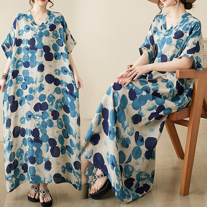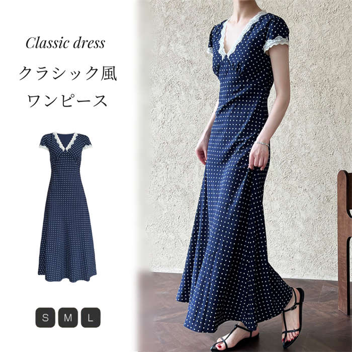 大人の クラシック風 深ネック マキシワンピース 体型カバー 小顔 日常 お呼ばれ デート ママコーデ パーティー 海 ピーチ 海外 旅行 リゾート 夏休み 20代 30代 40代 50代 ♪