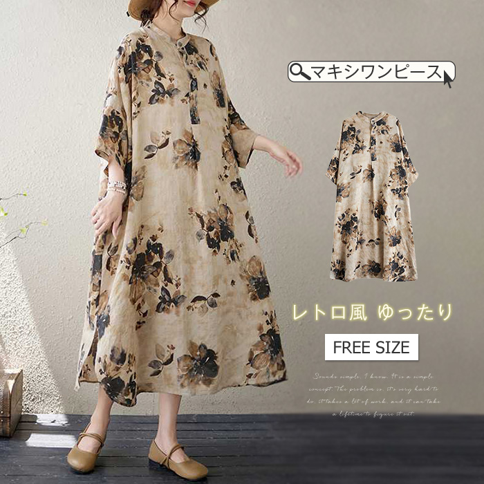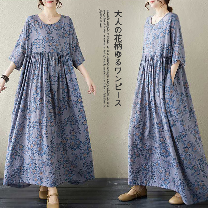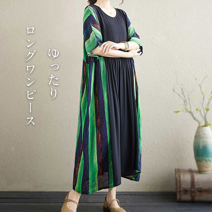ワンピース 夏 ゆったり ロングワンピース 体型カバー マキシワンピレディースファッション ワンピース