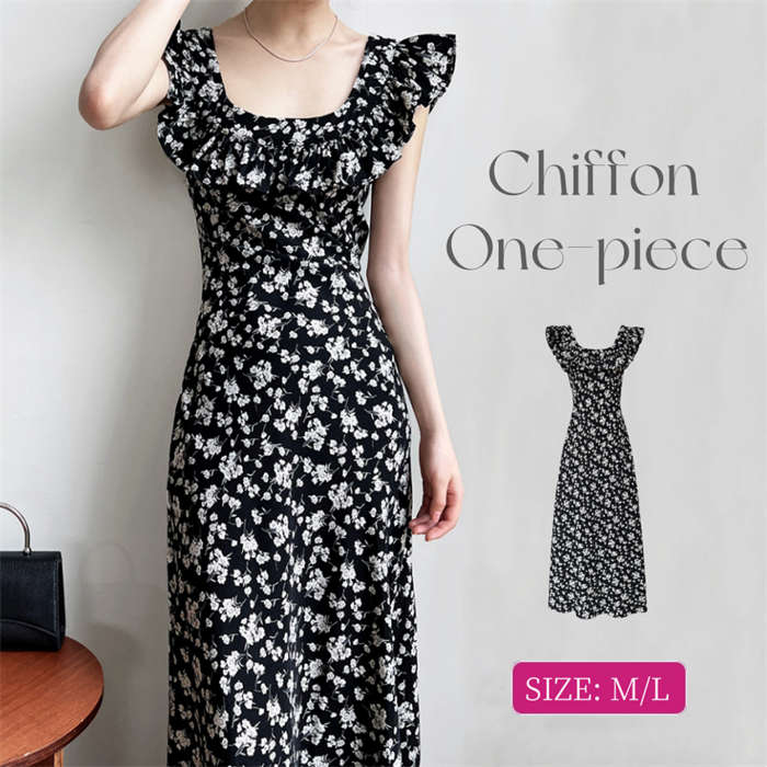 大人気~ クラシック風 小花柄 シフォンワンピース 大きいサイズ M L 春夏 体型カバー 小顔 普段着 外出 デート お呼ばれ ママコーデ プレゼント 贈り物 ギフト 誕生日 母の日 ♪