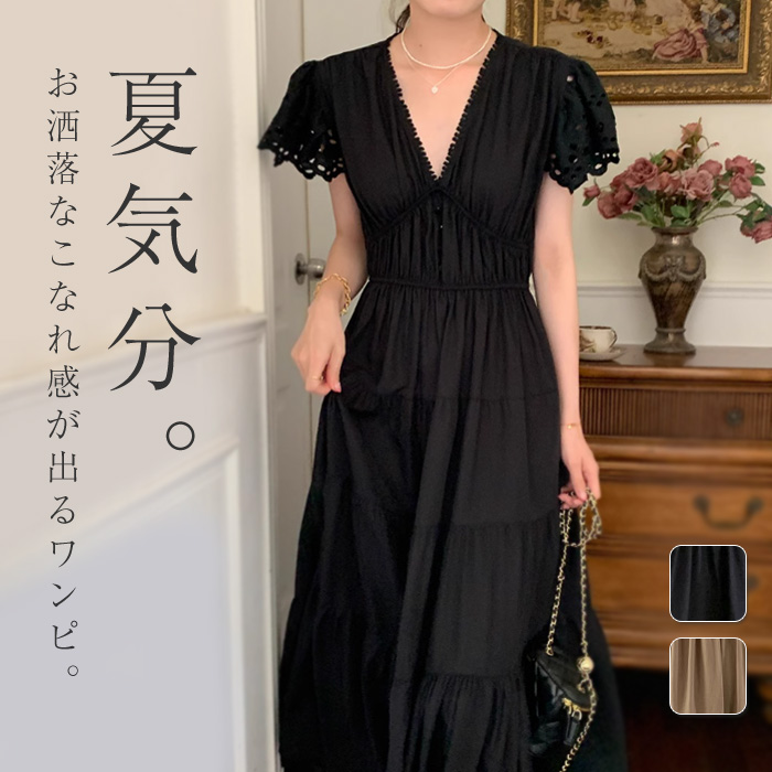 ワンピース 夏 ティアードワンピース 半袖 ロング レディース マキシ丈 ゆったり ロングワンピース Vネック 切り替え かわいい 体型カバー 定番 おしゃれ きれいめ カジュアル シンプル お出かけ