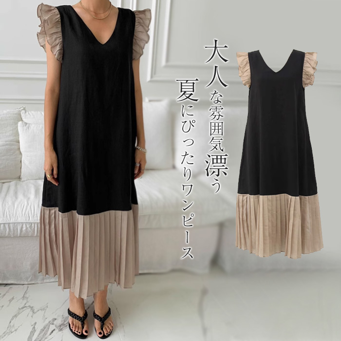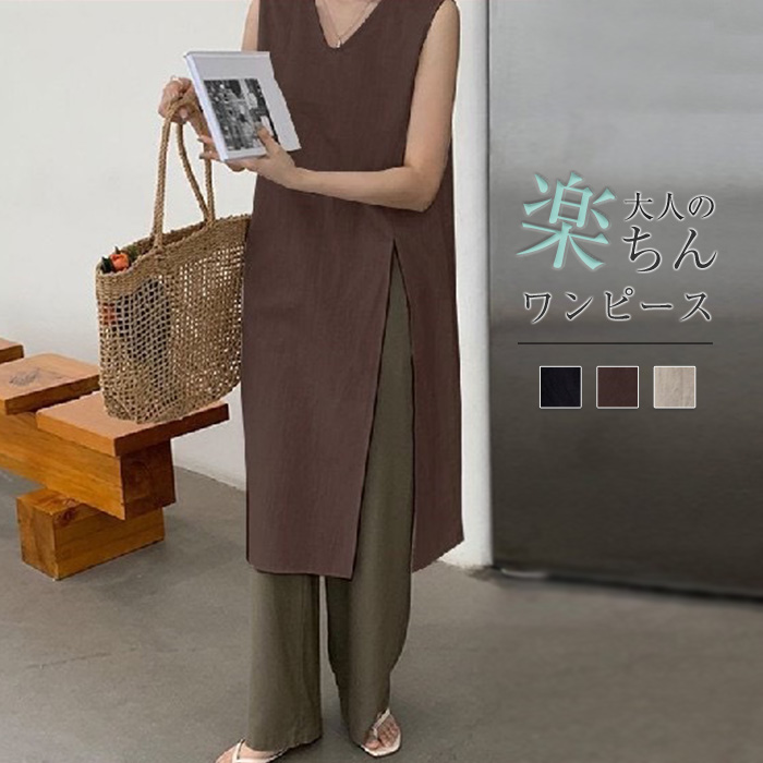 ワンピース ロング 夏 レディース ノースリーブ マキシ丈 ゆったり ロングワンピース タンクトップ Vネック 切り替え かわいい 体型カバー 定番 おしゃれ きれいめ カジュアル シンプル お出かけ