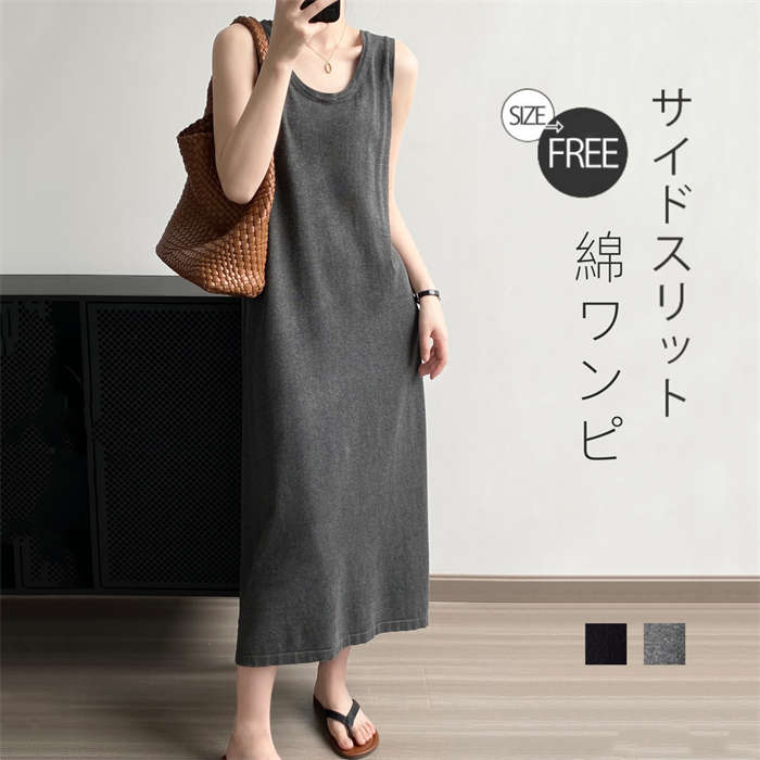 タンクワンピース グレー ブラック 灰色 黒 春夏 真夏 夏物 涼しい 柔らか 肌に優しい 楽ちん フリーサイズ 大人かわいい おしゃれ プレゼント 贈り物 ギフト 誕生日 母の日 ♪