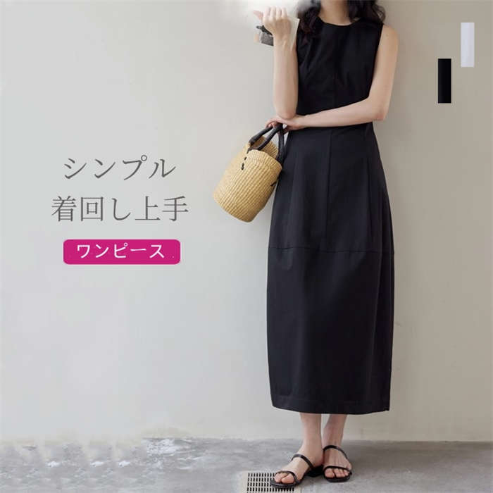 ワンピース ロング 夏 レディース ノースリーブ マキシ丈 ゆったり ロングワンピース タンクトップ ネック 切り替え かわいい 体型カバー 定番 おしゃれ きれいめ カジュアル シンプル お出かけ