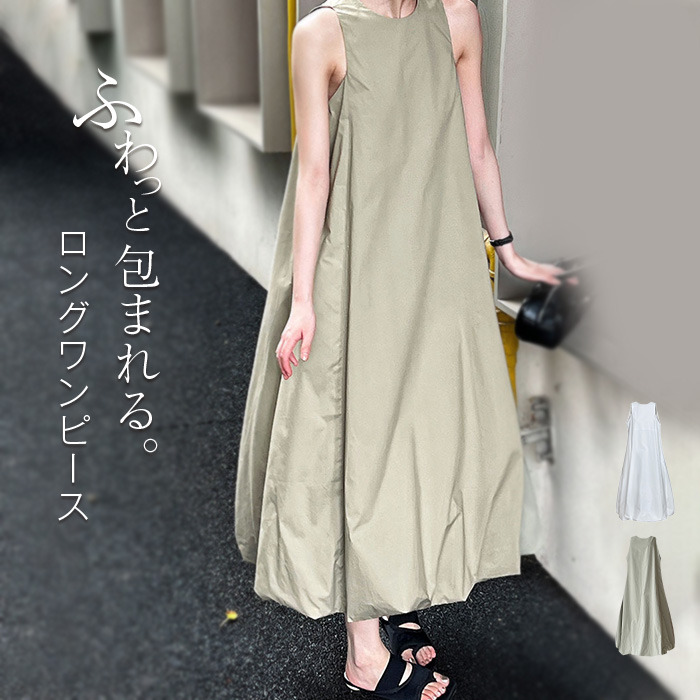 ワンピース ロングワンピース 夏 レディース きれいめ コクーンワンピース ノースリーブ 大きいサイズ ナチュラル シンプル 綿 コットン マキシ丈 ロング丈 Aライン 体型カバー 体型隠し ゆったり
