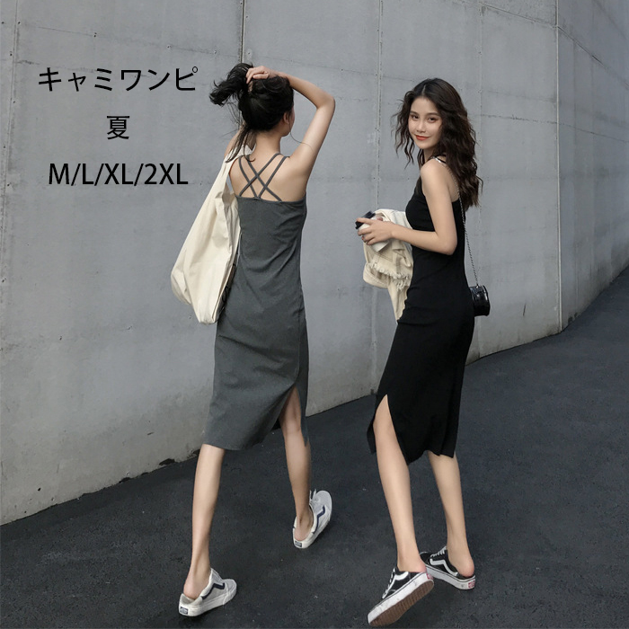 ワンピース ロングワンピ キャミワンピ レディース 夏 夏物 キャミワンピース ノースリーブ ゆったり おしゃれ 可愛い スリット 着痩せ 無地