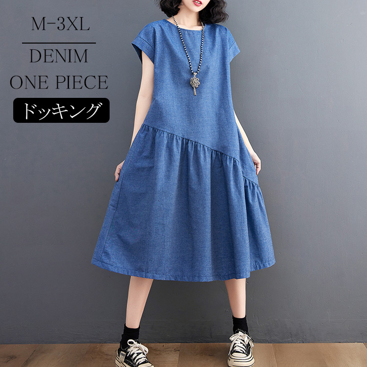体型カバー力抜群オシャレ感デニムワンピ 大人可愛い M L XL 2XL 20代 30代 40代 美しいシルエット