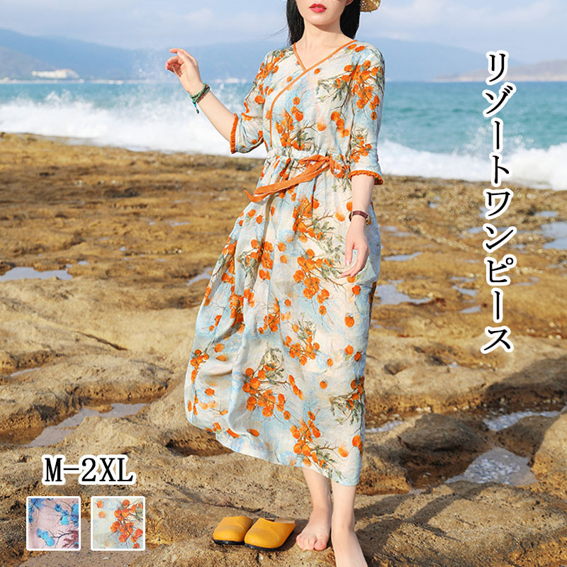 リゾートワンピース 海 旅行 トレンド 抜け感 大人気 マキシワンピース ロングワンピ シャツワンピ 30代 40代 50代 森ガール