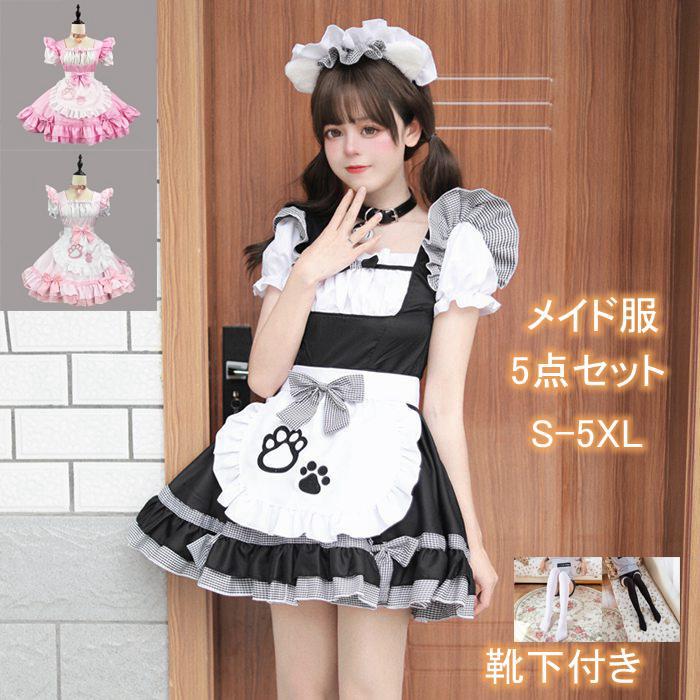 ハロウィン 衣装 レディース メイド服 猫 ネコ コスプレ ハロウィン衣装 仮装 コスプレ衣装 ワンピース 5点セット パーティー プレゼント
