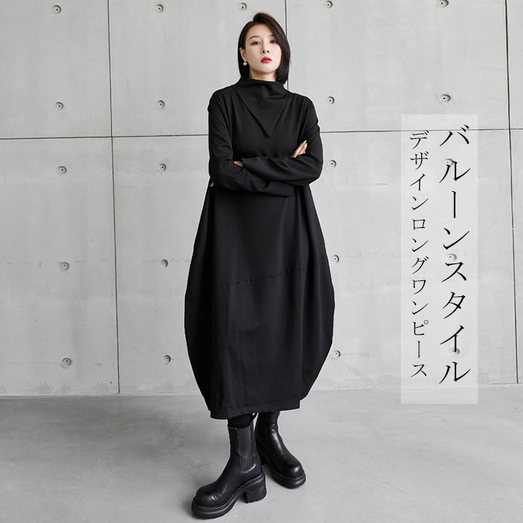 秋冬ワンピース レディース ロングワンピース デザイン アシンメトリー おしゃれ 体型カバーレディースファッション ワンピース