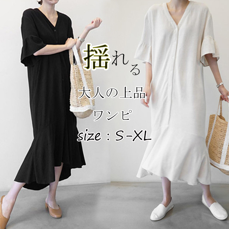 ゆったりワンピース ロングワンピ 森ガール風 フレンチスリーブレディースファッション ワンピース