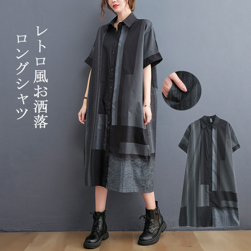 シャツとしても羽織りとしてもワンピースとしても気楽に着こなす 春 夏 秋 秋服 夏服 体型カバーレディースファッション ワンピース