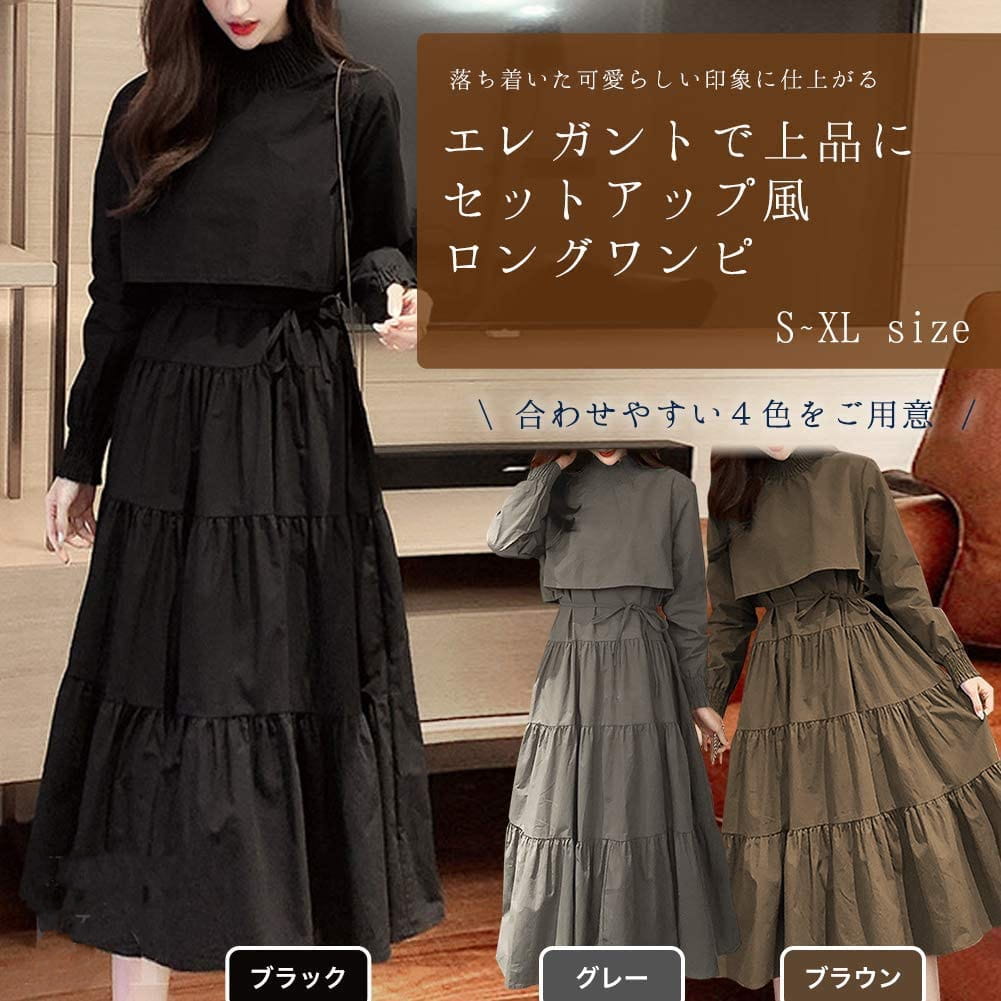 2020秋新作ティアード レディースロング ワンピース セットアップ 風 2 長袖 ワンピ ドレス レディース ロングワンピース 通勤 韓国風~