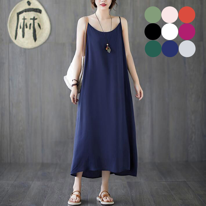 50代 ロング 部屋着 リネンワンピース おしゃれ 大人 ノースリーブ マキシ 綿麻 リネン混 体型カバー ラウンドネック プルオーバー レディース ルームウェア キャミワンピース 無地 ゆったり A