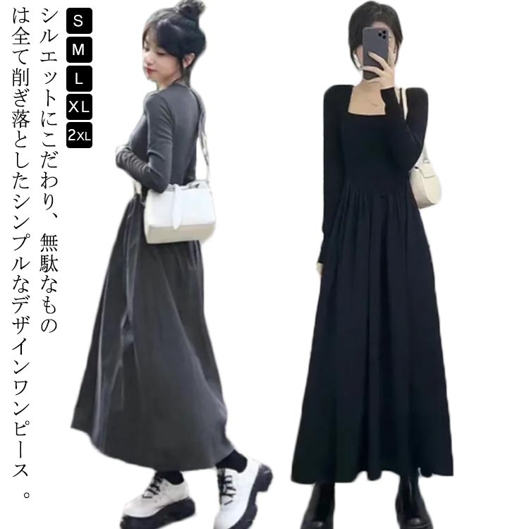 ドレス レディース ワンピース 外出 ロング丈 通勤 きれいめ ワンピ 普段着 ウエストゴム カジュアル 長袖 無地 体型カバー ロングワンピース パーティードレス 部屋着 着痩せ トレンド ロ