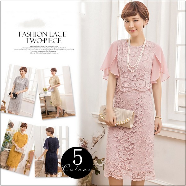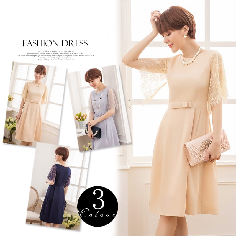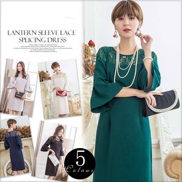 パーティードレス ドレス ワンピース ミディアムドレス お呼ばれドレス レース シフォン 袖有り 膝丈 結婚式 二次会 披露宴 謝恩会 パーティー ブライダル 通勤 オフィス レディース