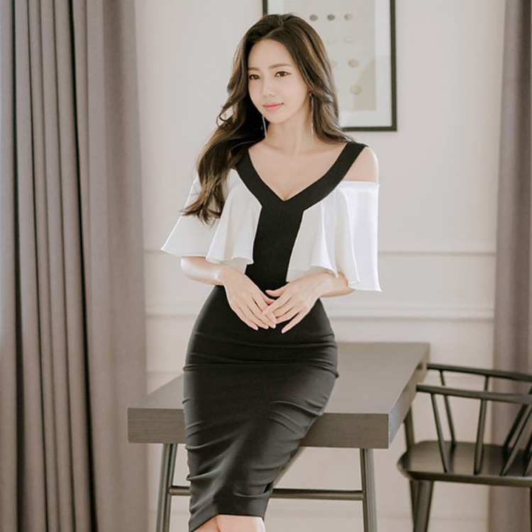 パーティードレス オープンショルダー バイカラーミディアムワンピース フリル 華やか 大人セクシー S M LLサイズ 大きいサイズ 大人可愛い 二次会 結婚式 発表会