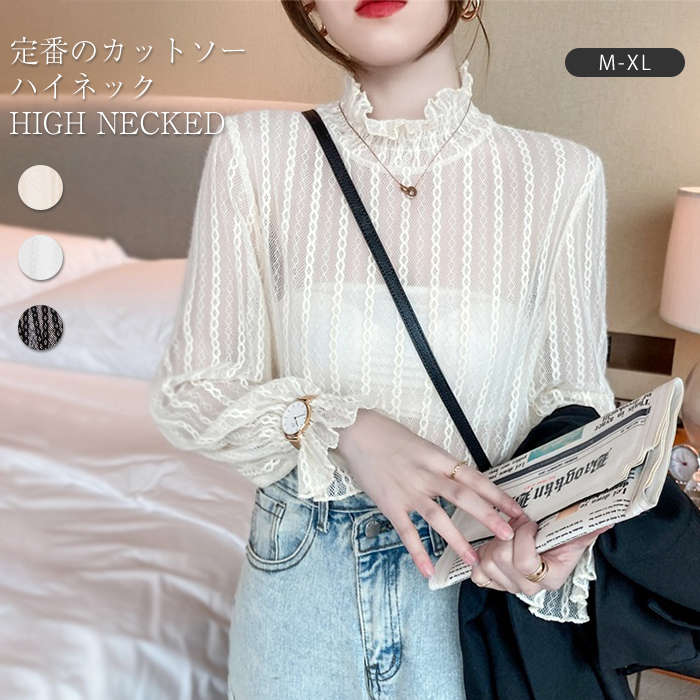 トップス 透け感 レース ブラウス シアー レディース ハイネック 立ち襟 長袖 シースルー インナー 春 夏 秋 レイヤード シャツ カットソー シアートップス カット セクシー おしゃれ き