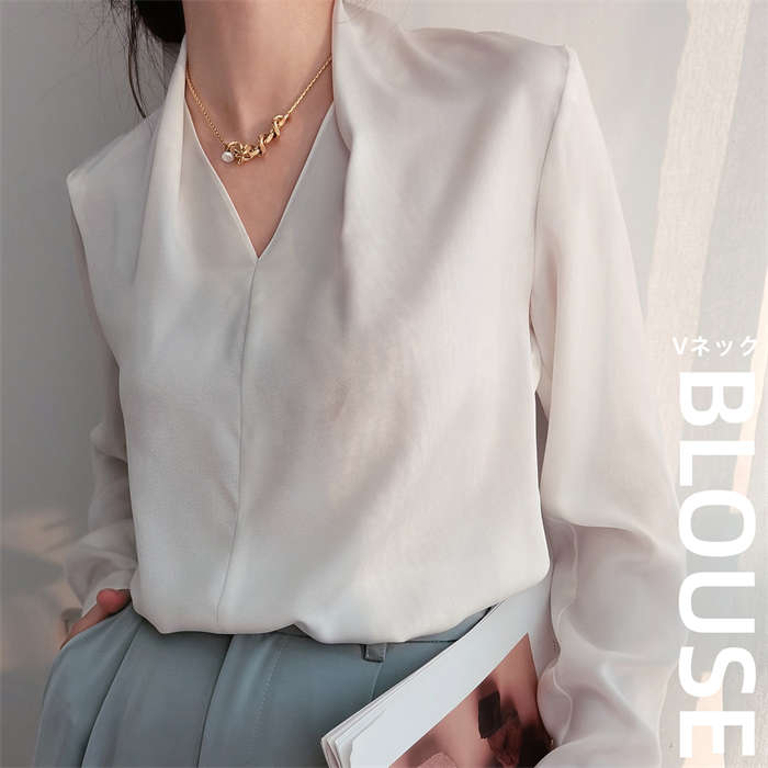 ブラウス Vネック レディース トップス シャツ インナー 白シャツ スーツインナー ビジネススーツ 春 夏 秋 長袖 小顔効果 体型カバー 上品 シンプル オフィスカジュアル フォーマル 通勤 オフ
